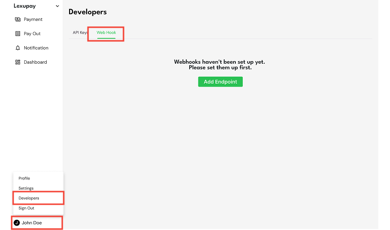 Here are the instructions for creating a Webhook in Lexupay.
