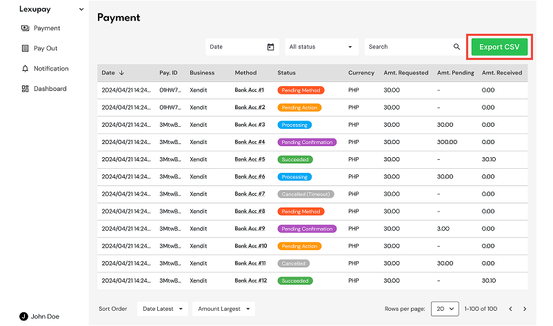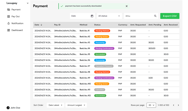 Lexupay provides an export feature that allows us to manage and analyze payment data easily. The following instructions will guide us through downloading a list of payments in CSV format.