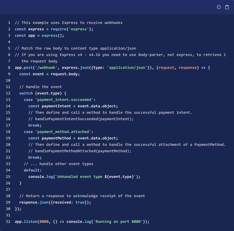 - Create a webhook endpoint handler to receive event data POST requests.