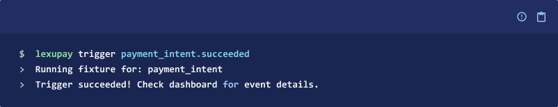 This example triggers a payment_intent.succeeded event: