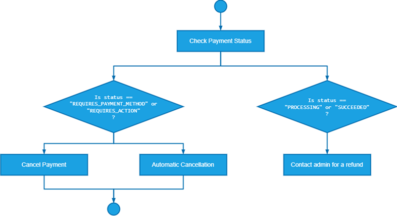 - If Status is 'requires_payment_method' or 'requires_action': Proceed to cancel the payment.