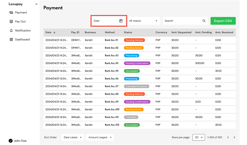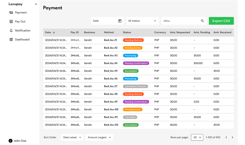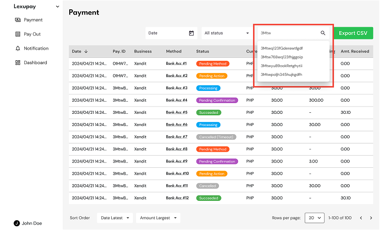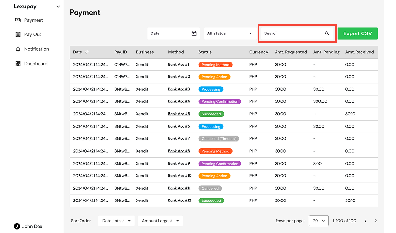 Lexupay provides a search feature that allows us to monitor payment flows effectively and efficiently. The following instructions will help us use the search feature easily.